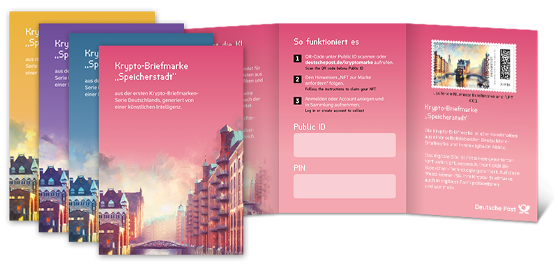 The fourth official Crypto Stamp from Deutsche Post is dedicated to a national and international heritage site: the Speicherstadt in Hamburg. This impressive 19th-century warehouse complex has been a UNESCO World Heritage Site since 2015, providing the setting for this unique issue.