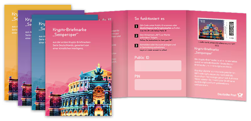This limited edition consists of 50,000 booklets, which will be available from 2 October on the webshop of Deutsche Post and in our international Webshop. The series has an innovative hybrid format, combining a physical stamp with a digital NFT twin. While the physical stamp has a consistent design, the booklets and NFTs are available in five colour variants and rarity levels. Be sure to get yours in time and add this special version to your collection!
