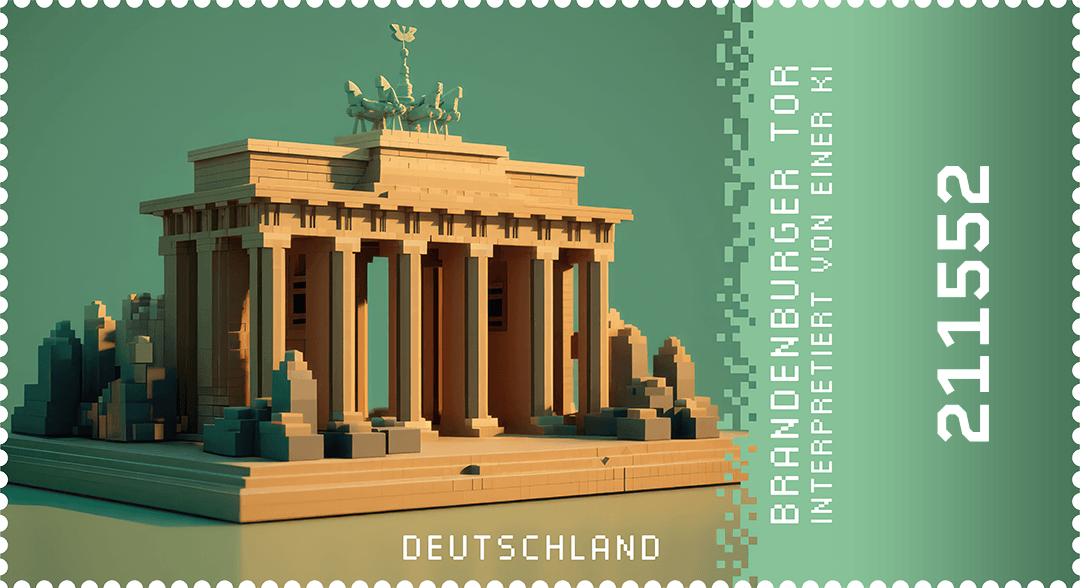 The launch of the first Deutsche Post Krypto-Briefmarke (crypto stamp). The crypto stamps are a combination of a physical stamp and a digital NFT image. Deutsche Post's first crypto stamp contains the motif of the Brandenburger Tor. The NFT with this motif and it's unification by the unique number of the related physical stamp can be collected in your digital collection. The motif has been created with artificial intelligence. The depiction of the historical building and its surroundings is highly simplified, with many clear corners reminiscent of the pixel style from the digital world. In addition to the Berlin landmark, other interesting buildings in Germany with historical significance will follow.