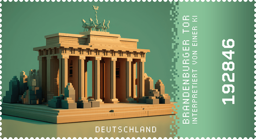 The launch of the first Deutsche Post Krypto-Briefmarke (crypto stamp). The crypto stamps are a combination of a physical stamp and a digital NFT image. Deutsche Post's first crypto stamp contains the motif of the Brandenburger Tor. The NFT with this motif and it's unification by the unique number of the related physical stamp can be collected in your digital collection. The motif has been created with artificial intelligence. The depiction of the historical building and its surroundings is highly simplified, with many clear corners reminiscent of the pixel style from the digital world. In addition to the Berlin landmark, other interesting buildings in Germany with historical significance will follow.