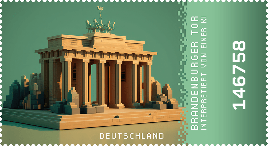 The launch of the first Deutsche Post Krypto-Briefmarke (crypto stamp). The crypto stamps are a combination of a physical stamp and a digital NFT image. Deutsche Post's first crypto stamp contains the motif of the Brandenburger Tor. The NFT with this motif and it's unification by the unique number of the related physical stamp can be collected in your digital collection. The motif has been created with artificial intelligence. The depiction of the historical building and its surroundings is highly simplified, with many clear corners reminiscent of the pixel style from the digital world. In addition to the Berlin landmark, other interesting buildings in Germany with historical significance will follow.