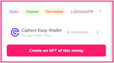 Claimed stamps only exist within your Ciphers account. Minting moves them to your wallet where only you control them, secured by your private key.